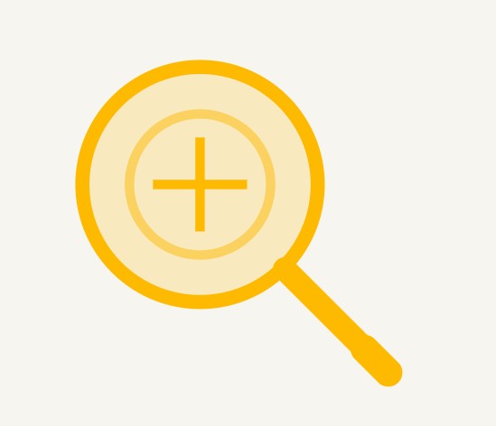 Represented by a magnifying glass in yellow, representing illumination and discovery, the research that lights the way for evidence-based practice.